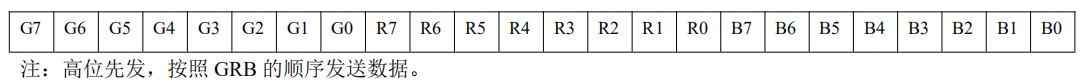 数据协议采用单线归零码的通讯方式,像素点在上电复位以后,DIN端接受从控制器传输过来的数据,首先 送过来的24bit数据被第一个像素点提取后,送到像素点内部的数据锁存器,剩余的数据经过内部整形处理电路整 形放大后通过DO端口开始转发输出给下一个级联的像素点,每经过一个像素点的传输,信号减少24bit。