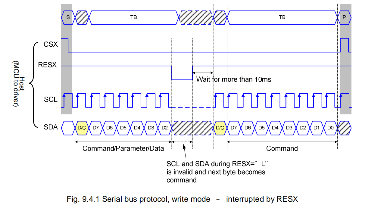 RES拉低, 驱动会丢弃当前已传输位并重置接口, 待RES恢复后重新开始下一次命令数据传输. - 若传输中